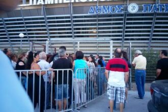 Εκατοντάδες άτομα περιμένουν έξω από το Παμπελοποννησιακό στάδιο της Πάτρας για μία…