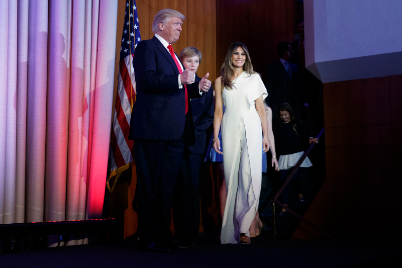 Ακολούθως ευχαρίστησε ένα ένα τα μέλη της οικογένειάς του που τον συνόδεψαν επί σκηνής, τις κόρες του Ιβάνκα και Τίφανι, τους γιους του Ντόναλντ Τραμπ τζούνιορ, Ερικ και Μπάρον, την σύζυγό του Μελάνια, την πρώην σύζυγό του που επίσης βρέθηκε εκεί, τον εγγονό του που στεκόταν διαρκώς όλη την ώρα στο πλάι του.