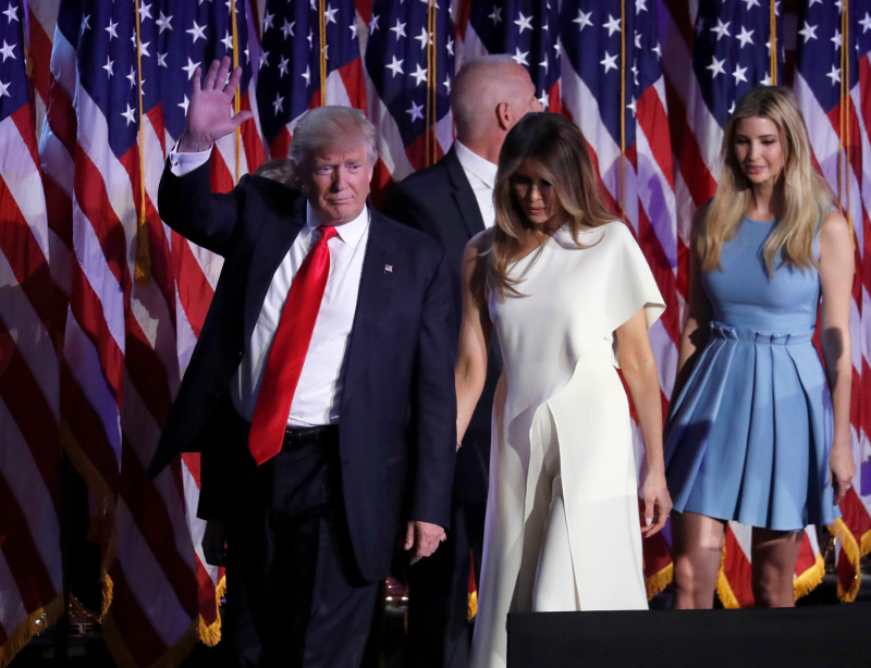 Με στόχο να κατευνάσει πολίτες, αγορές και κράτη ο Ντόναλντ Τραμπ ανέβηκε λίγο νωρίτερα στη σκηνή για την πρώτη του ομιλία ως νέου Προέδρου των ΗΠΑ, έχοντας στο πλευρό του όλη του την οικογένεια.
